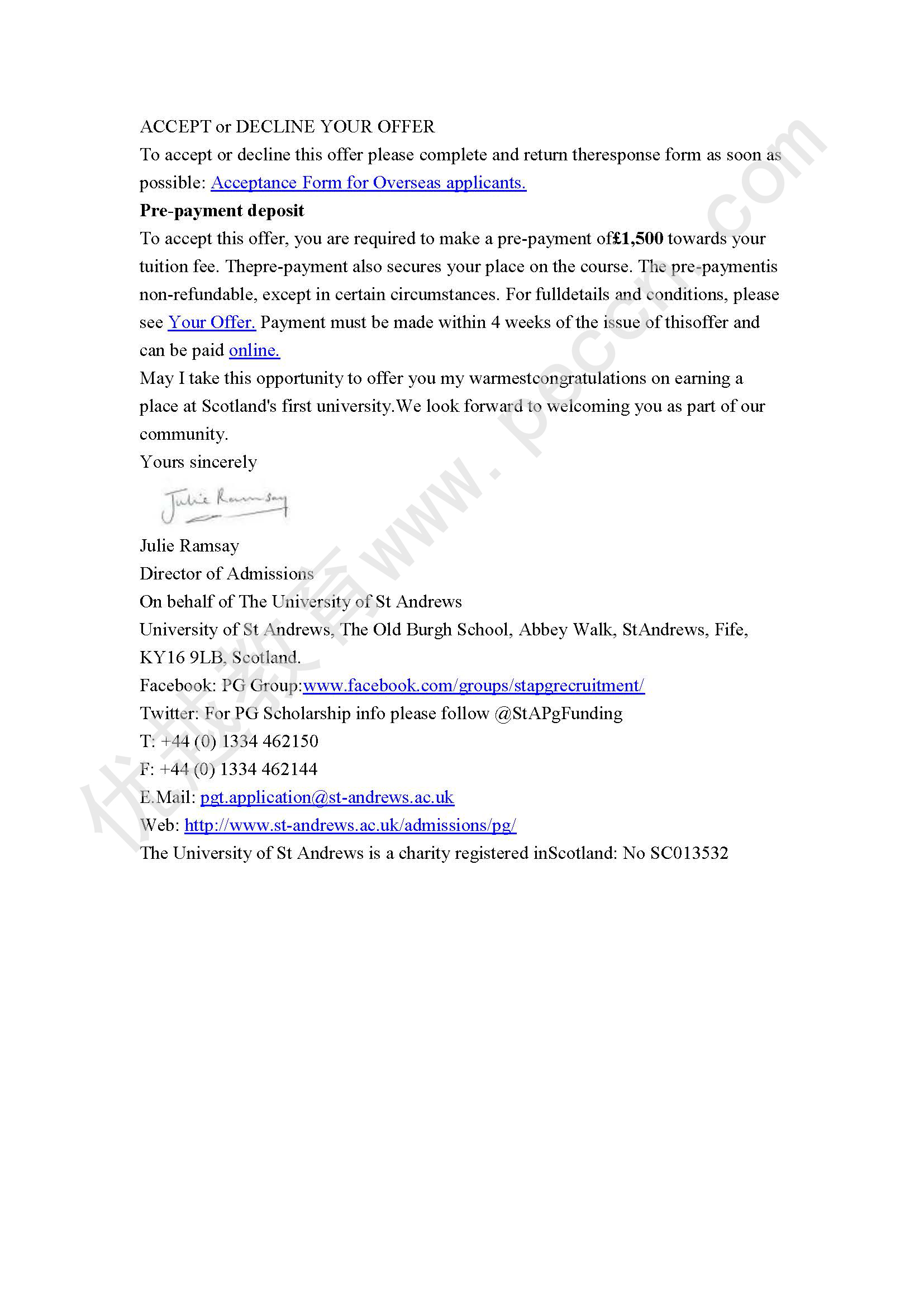 恭喜優越教育成功幫助這位芳同學申請到圣安德魯斯大學市場營銷專業,歡迎隨時在線咨詢優越教育,我們的客服24小時在線,感謝您的咨詢!