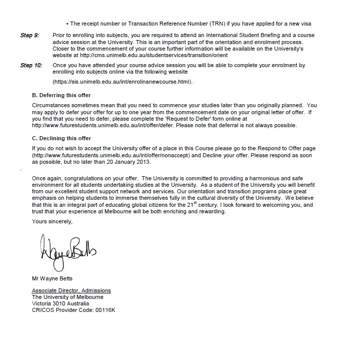 恭喜優越教育成功幫助這位章同學申請到墨爾本大學信息技術碩士專業,歡迎隨時在線咨詢優越教育,我們的客服24小時在線,感謝您的咨詢!