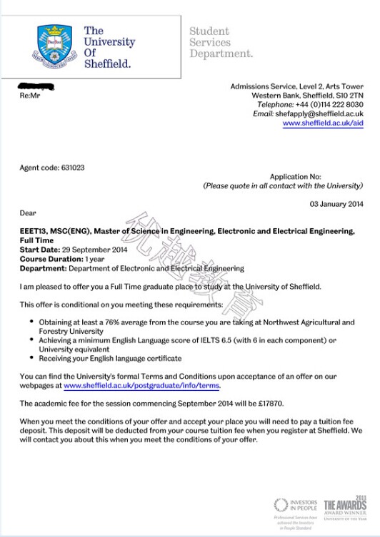 恭喜優越教育成功幫助這位林同學成功申請到謝菲爾德大學研究生電子和電氣工程專業,歡迎隨時在線咨詢優越教育,我們的客服24小時在線,感謝您的咨詢!