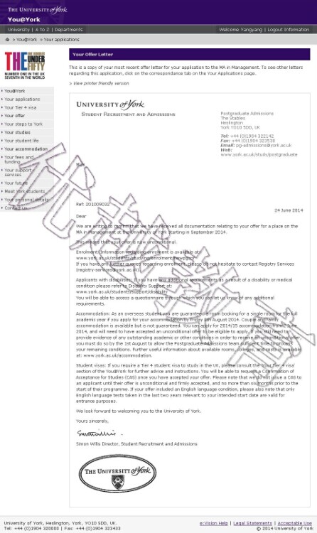 當前位置: 首頁 > 關于優越 > 錄取榜單 > 恭喜宋同學成功申請到約克大學研究生管理專業--優越教育