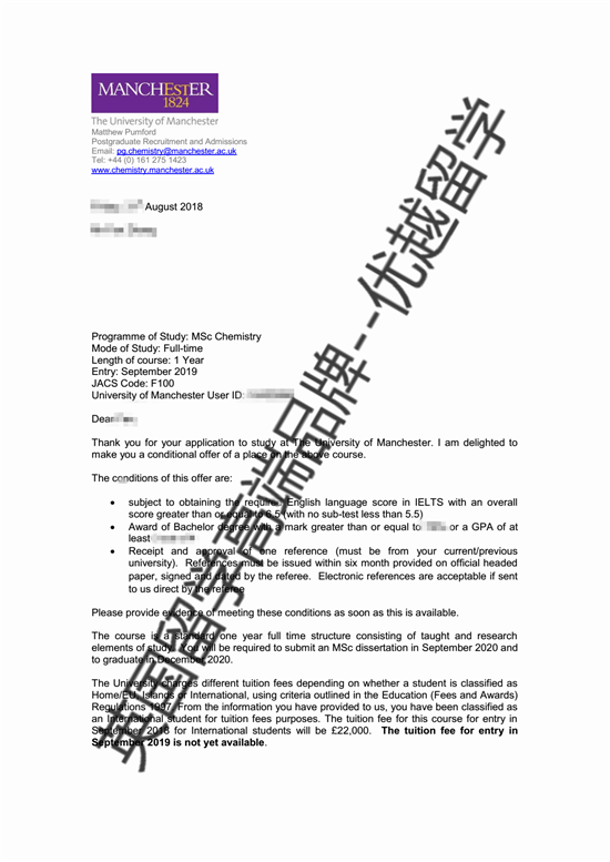 2019offer:恭喜劉同學(xué)獲得曼徹斯特大學(xué)化學(xué)專業(yè)碩士通知書