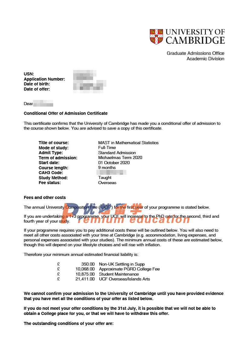 2020offer:恭喜袁同學(xué)獲得劍橋大學(xué)統(tǒng)計數(shù)學(xué)專業(yè)碩士通知書