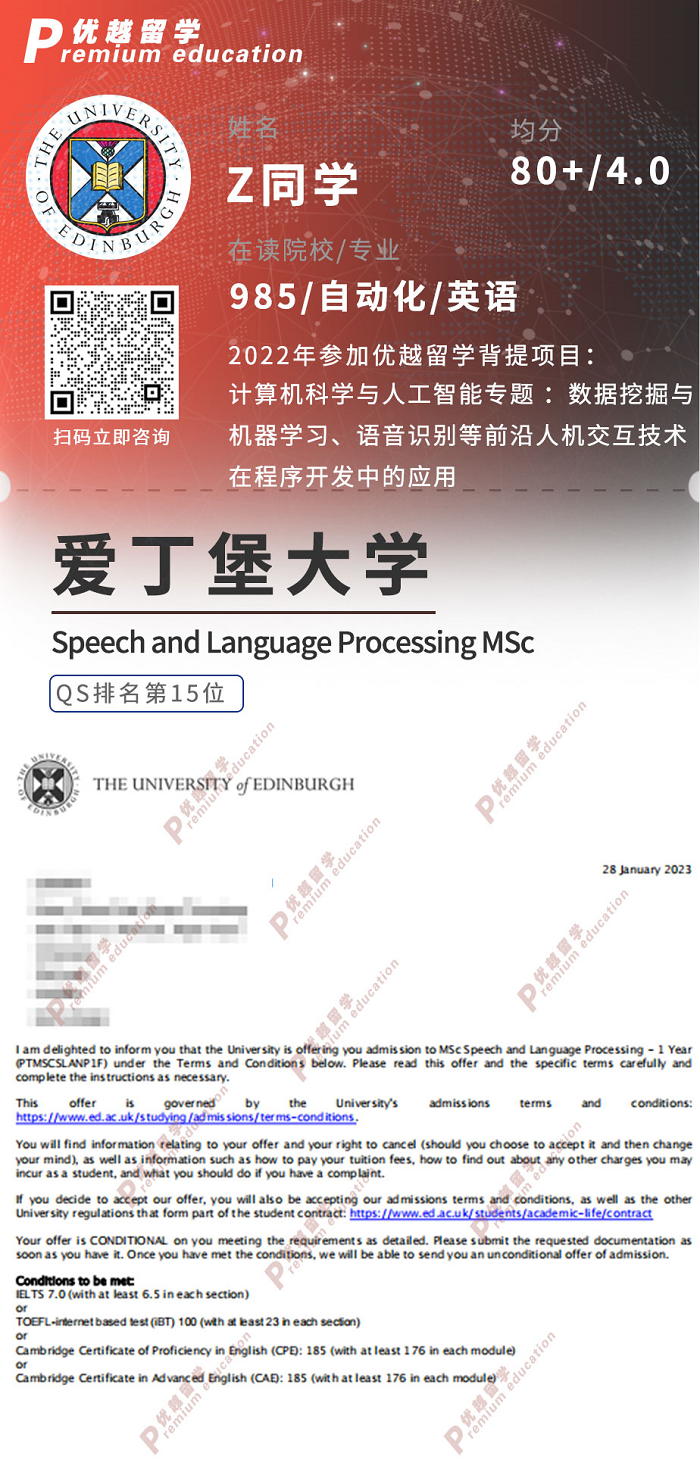 2023offer:恭喜Z同學在碩士留學申請中獲得愛丁堡大學商學碩士通知書。