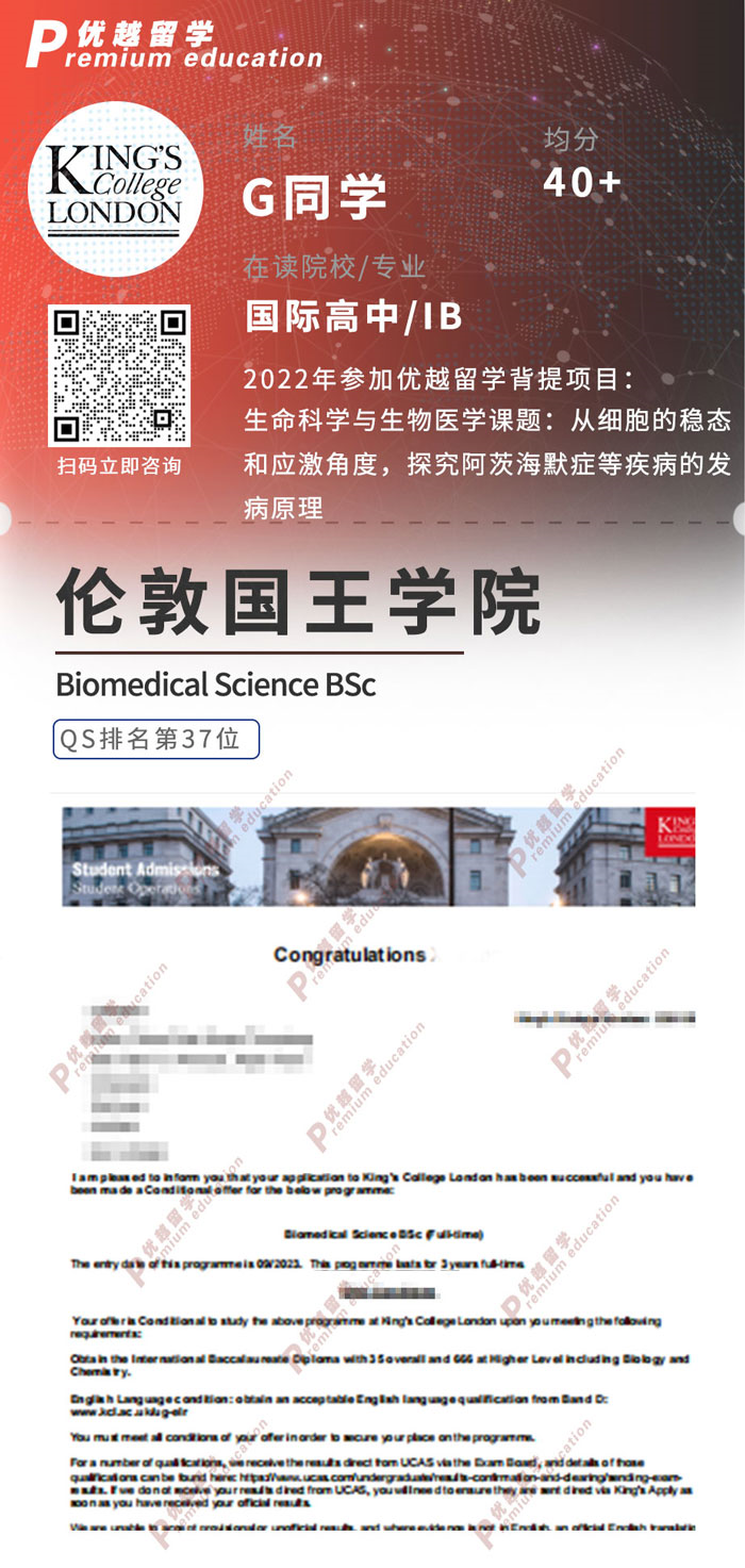 錄取院校:倫敦國王學院
