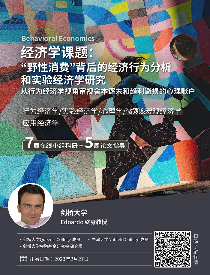 1.本項目適合經濟學、行為經濟學、實驗經濟學、心理學、政治科學、政府學、社會學等專業或希望修讀相關專業的學生;具備經濟學、心理學基礎知識的學生優先。