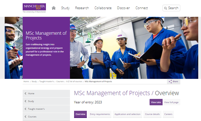 2023offer(英國碩士): 【曼徹斯特大學】項目管理專業