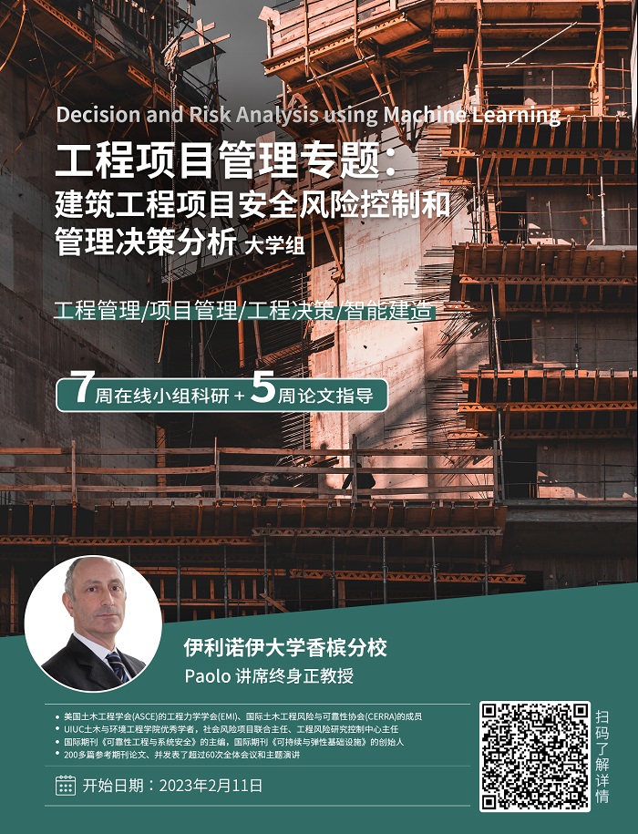 1.本項目適合工程管理、項目管理、土木與環境工程、結構工程、工業工程等工程類專業或希望修讀工程類專業的學生,以及對工程風險決策感興趣的學生;具備高數、線性代數、概率論基礎的學生優先。