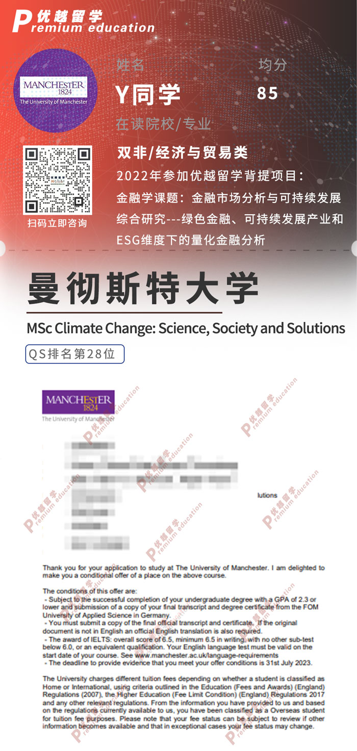 2023offer來(lái)襲!恭喜Y同學(xué)在碩士留學(xué)申請(qǐng)中斬獲曼徹斯特大學(xué)科學(xué)、社會(huì)和解決方案碩士通知書(shū)!