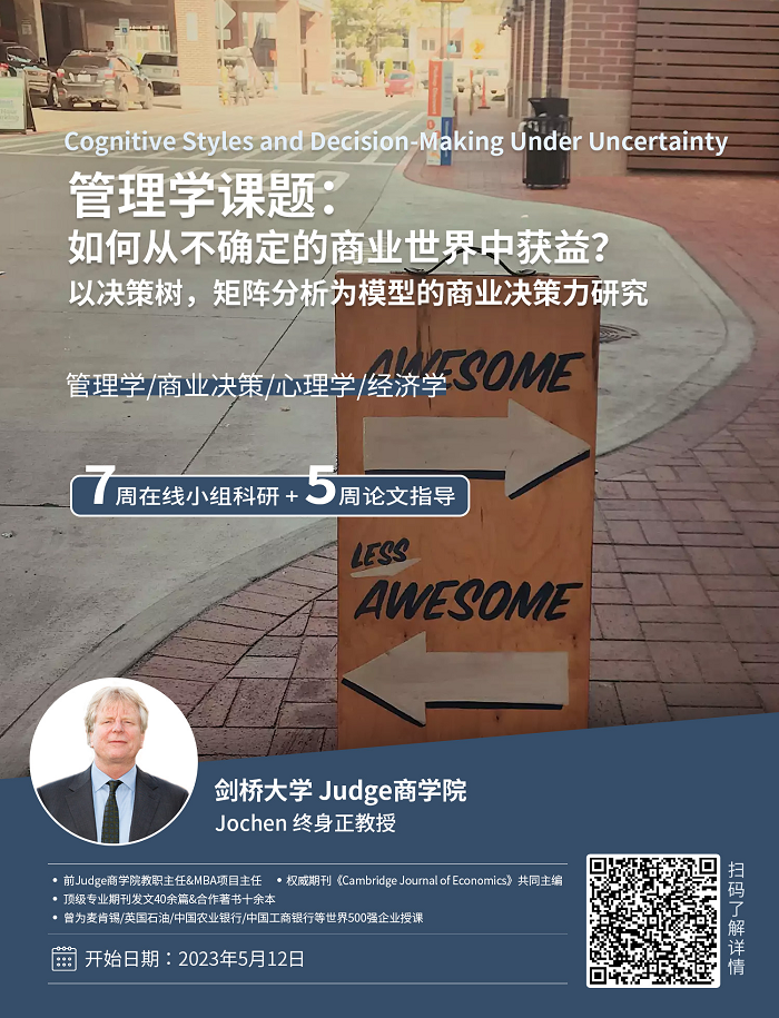 1.本項目適合希望修讀管理學、MBA、經濟學、行為經濟學、心理學、社會學等專業或者希望修讀相關專業的學生。