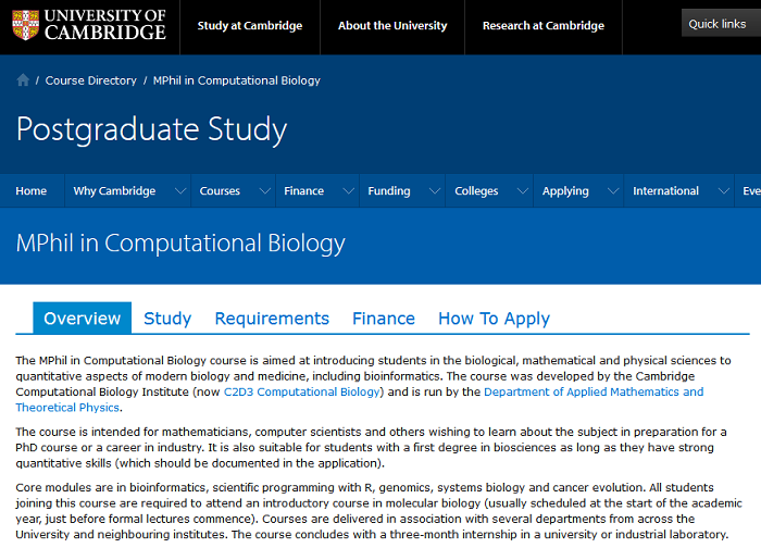 本課程的申請者應獲得英國2:1榮譽學位以上,或同等海外學歷。本科來自生物、數學、計算機科學、物理學等相關學科背景。