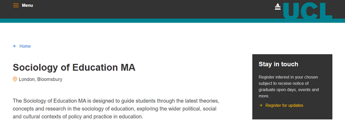 進入該課程的最低要求是英國大學的二等學士學位或同等標準的海外資格。由于該課程的學術(shù)內(nèi)容要求很高,申請人需要具有強大和相關(guān)的學術(shù)背景,通常是社會學和或教育學。如果申請人可以展示其他優(yōu)勢,則可以考慮一系列其他學術(shù)背景。例如,大量相關(guān)教育從業(yè)經(jīng)驗的申請人。