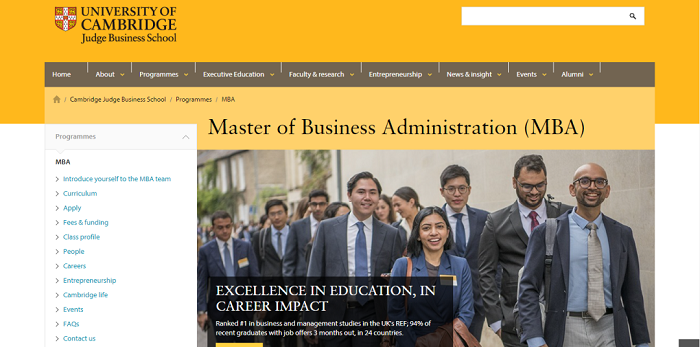 劍橋大學的工商管理碩士使學生能夠熟練掌握全球背景下的管理和核心業務原則并進行相關實踐。除此之外學生能夠培養重要的人際交往能力通過團隊項目和特殊興趣小組獲得專業領域的經驗,成為經驗豐富的團隊合作者和團隊領導者。學校的MBA課程在學術上嚴謹、廣泛、高度實用,注重團隊技能;通過講習班、研討會、講座、小組工作、數字資源和體驗式學習等混合方式進行教學;以核心課程為基礎,有額外的選修課供學生選擇;根據學生的興趣,在第三學期量身定制開設集中課程。