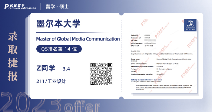 2023offer來襲!恭喜W同學(xué)在碩士留學(xué)申請中斬獲墨爾本大學(xué)全球媒體傳播碩士通知書!