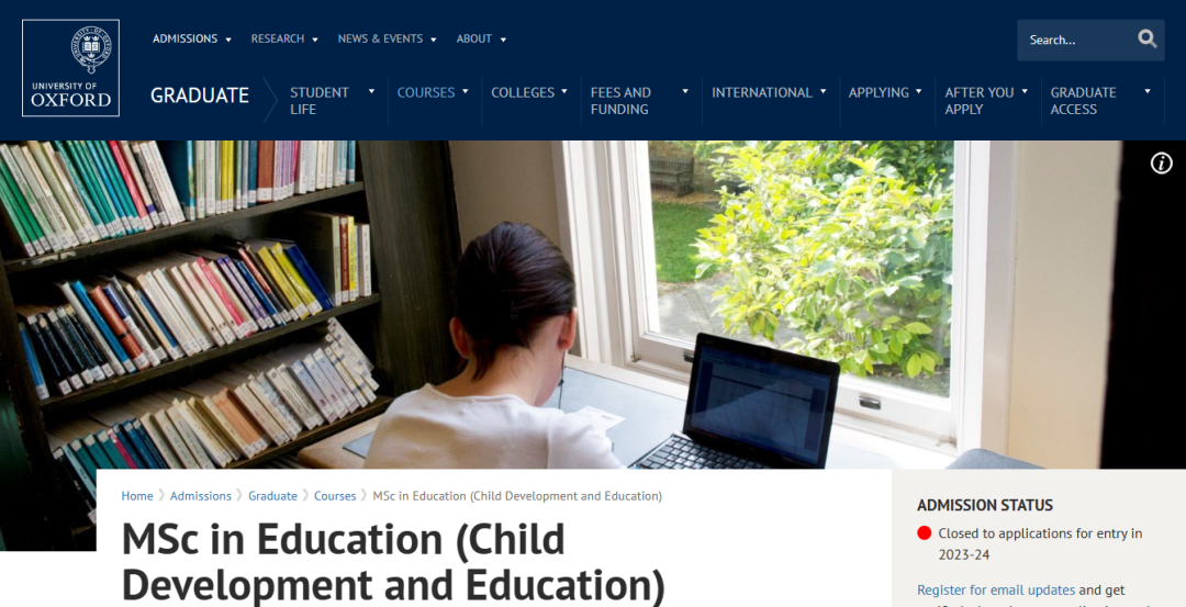 牛津大學的兒童發展與教育碩士專業旨在促進學生對兒童發展的理論及研究的批判性理解,以及它們在不同背景下與教育計劃和政策的設計和評估的相關性。也在一定程度上促進對全球性兒童發展科學當前挑戰的批判性理解。這是一個全日制的,為期一年的碩士課程。學生將參加講座,研討會和講習班,還將完成實地工作或為個人的碩士論文進行二次數據分析,論文的主題將在與主管導師的討論中提出并確定。總之,該課程將為學生提供機會,來加深對兒童發展理論的理解及其與兒童教育和福祉決策的相關性。