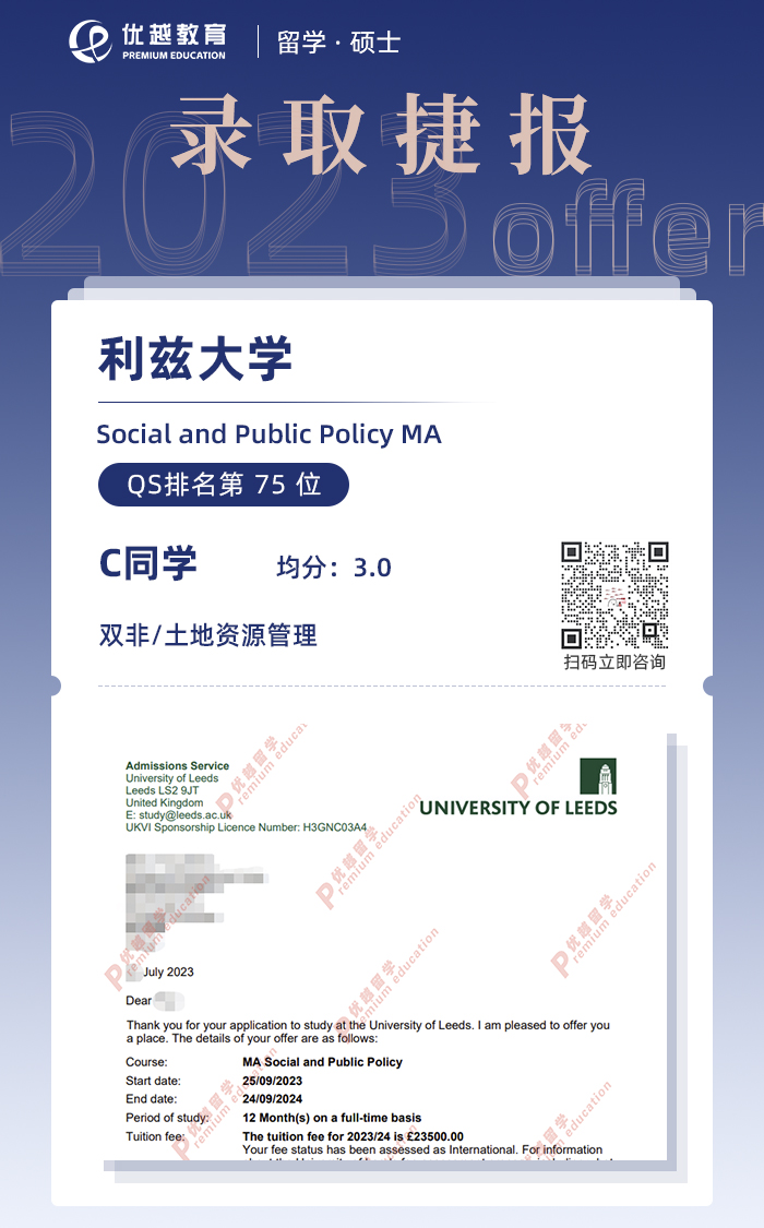 2023offer(英國碩士): 【利茲大學】社會與公共政策專業