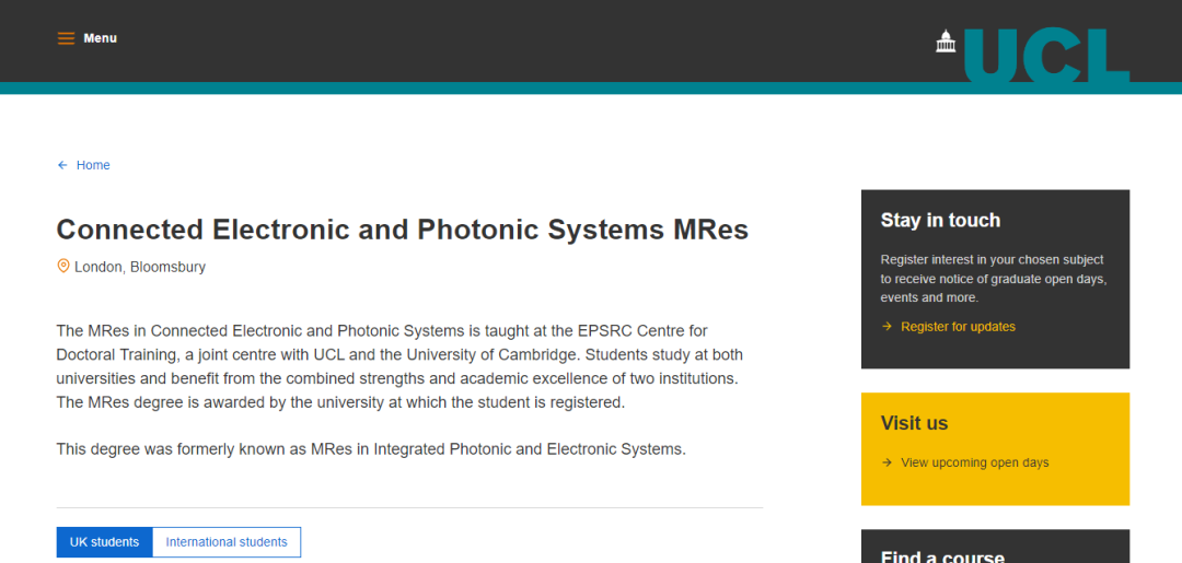 2023offer來襲!恭喜L同學在碩士留學申請中斬獲倫敦大學學院連接電子和光子系統碩士通知書!