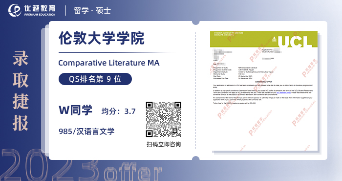 2023offer來(lái)襲!恭喜W同學(xué)在碩士留學(xué)申請(qǐng)中斬獲倫敦大學(xué)學(xué)院比較文學(xué)碩士通知書!