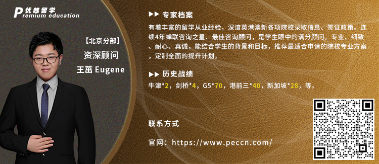 本案例的留學(xué)顧問(wèn)是優(yōu)越北京團(tuán)隊(duì)的Eugene老師,連續(xù)4年蟬聯(lián)優(yōu)越“咨詢之星”、最佳咨詢顧問(wèn)。是北京同學(xué)們心中的滿分顧問(wèn)。Eugene老師擅長(zhǎng)英港澳新名校申請(qǐng),英國(guó)G5大學(xué)offer斬獲70+,港前三40+,新加坡28+。通過(guò)結(jié)合學(xué)生背景和目標(biāo),推薦最合適的申請(qǐng)?jiān)盒<皩I(yè)方案給大家。