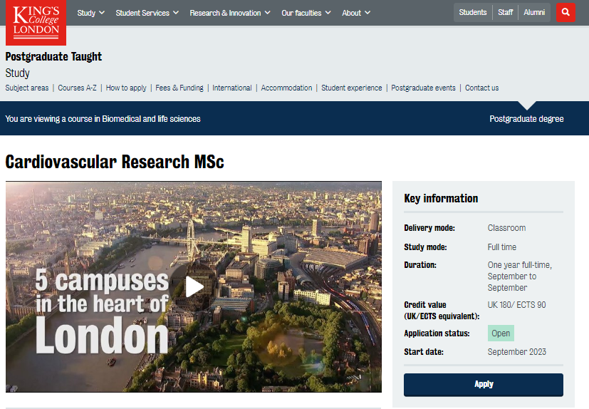 2023offer(英國碩士): 【倫敦國王學院】心血管研究專業