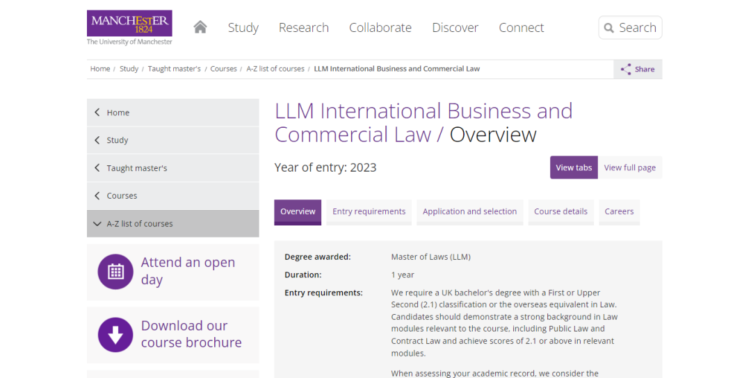本專業(yè)申請(qǐng)要求英國(guó)學(xué)士學(xué)位具有第一或第二(2.1)分類或法律的海外同等學(xué)歷。候選人應(yīng)在與課程相關(guān)的法律模塊(包括公法和合同法)中表現(xiàn)出強(qiáng)大的背景,并在相關(guān)模塊中取得 2:1 或以上的分?jǐn)?shù)。