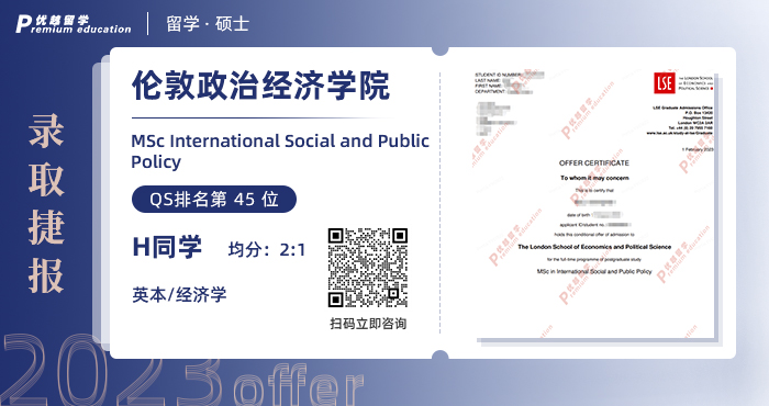 2023offer來襲!恭喜G同學在碩士留學申請中斬獲倫敦政治經濟學院LSE后期發展政治經濟學碩士通知書!