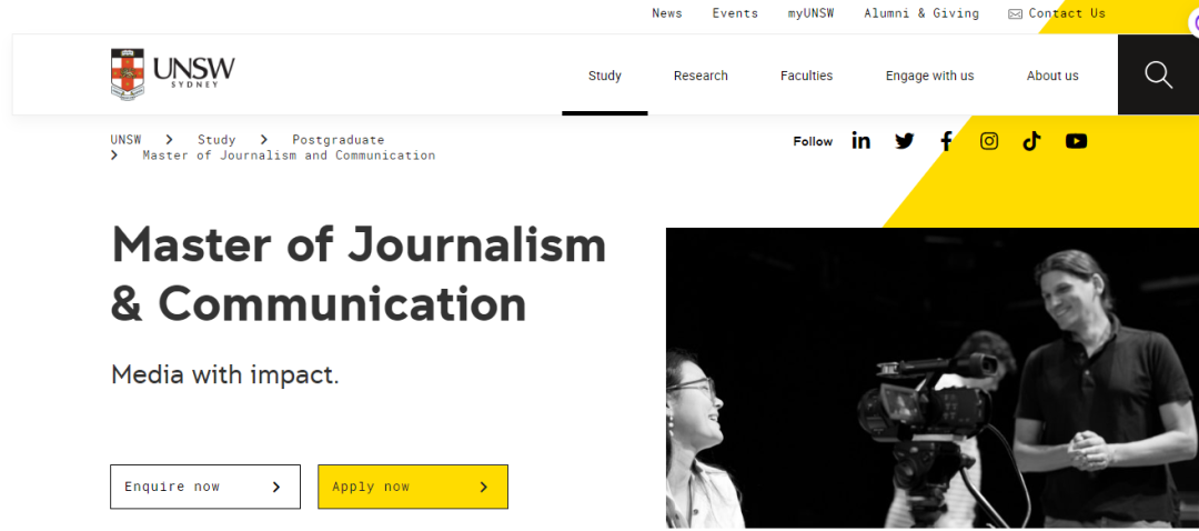 新南威爾士大學(xué)新聞與傳播碩士是當(dāng)代新聞、媒體研究和傳播領(lǐng)域的兩年制全日制研究生大學(xué)學(xué)位。新南威爾士大學(xué)媒體專業(yè)一直位列全球51-100名,在澳大利亞大學(xué)中處于領(lǐng)先地位。該碩士學(xué)位將使學(xué)生掌握實踐技能和理論知識,以了解和塑造全球新聞媒體和傳播行業(yè)。學(xué)生可以學(xué)習(xí)支撐新聞道德的概念,并通過專業(yè)經(jīng)驗將其付諸實踐。除此之外,還將有機會選修包括全球化、政治和氣候變化在內(nèi)的人文學(xué)科專家的選修課。