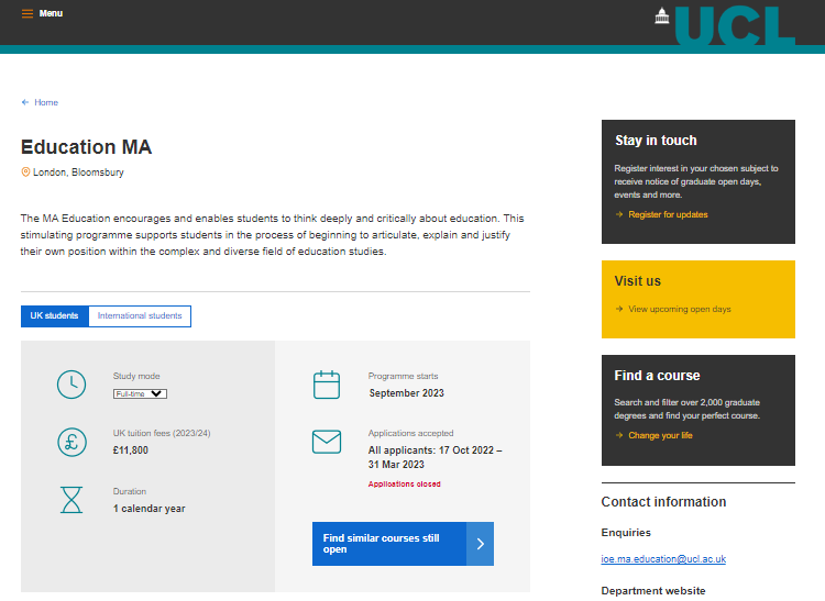 教育碩士課程以倫敦大學學院教育與社會學院 IOE為基礎,借鑒了這個世界領先的教育研究中心的專業(yè)知識。碩士教育團隊堅定地致力于該項目的目標,并熱衷于培養(yǎng)學生的理解力。課程發(fā)展廣泛的學術和可轉移的專業(yè)技能,這對學生的職業(yè)生涯大有裨益,畢業(yè)生也有能力以令人興奮的方式進一步發(fā)展各自的職業(yè)生涯。