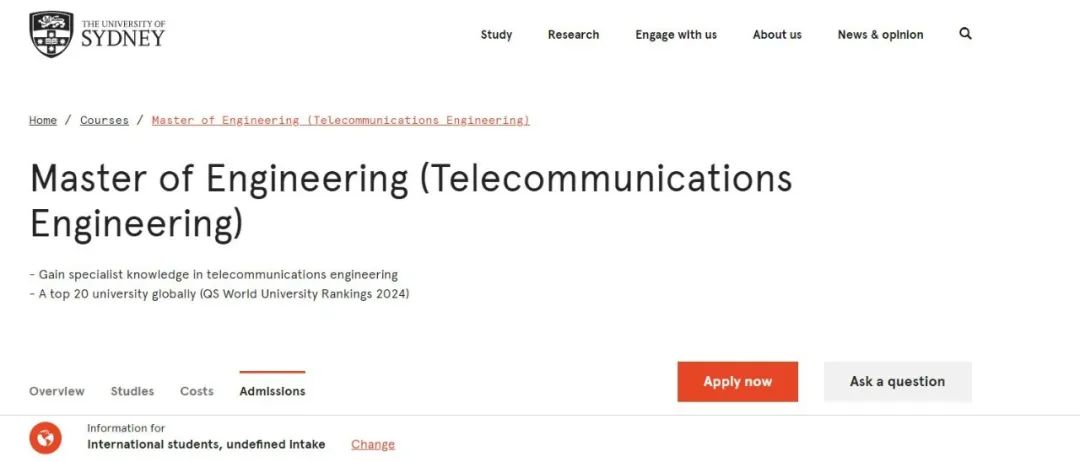 2024offer(澳洲碩士): 【悉尼大學】電訊工程專業