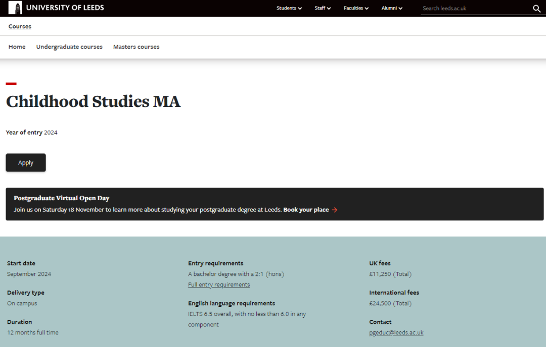 2024offer(英國碩士): 【利茲大學】兒童研究專業