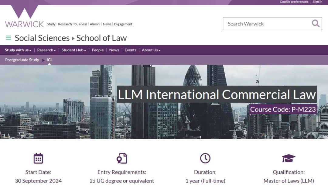 2024英國碩士offer+1!【華威大學】國際商法LLM