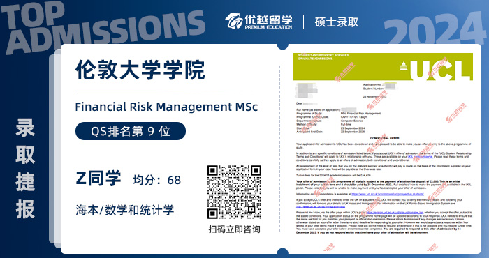 2024重磅offer來襲!恭喜Z同學(xué)在碩士留學(xué)申請中斬獲倫敦大學(xué)學(xué)院UCL金融風(fēng)險管理碩士錄取!