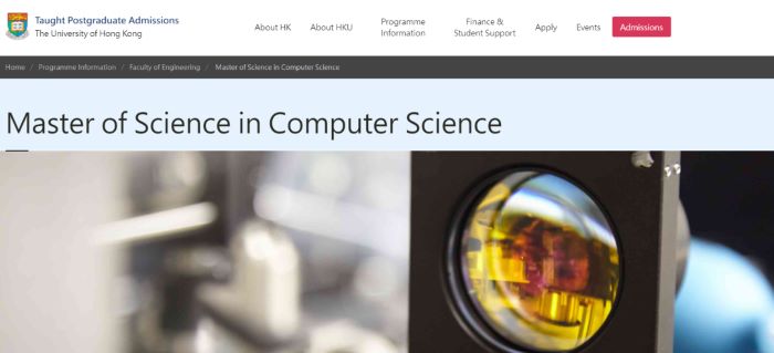 香港大學的MSC CS有兩個大方向,其一工程學院下屬CS系,其二統計精算系和計算機系合辦的Data Science專業,該生錄取專業屬工程學院開設,學習方向偏金融和計算機中實用的數據和算法,用來實現金融模型或系統,著重于業務和財務分析的技術,側重金融業的應用。