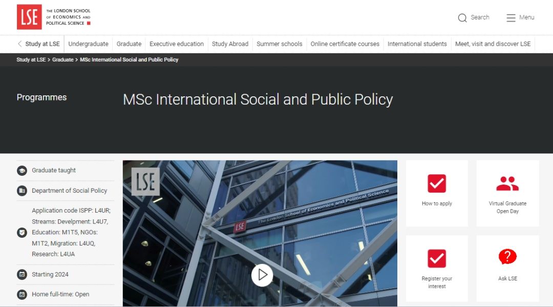 ISPP計(jì)劃探討了國(guó)家和社會(huì)如何應(yīng)對(duì)社會(huì)、人口和經(jīng)濟(jì)變化以及貧困、移民和全球化的全球挑戰(zhàn)。它以倫敦政治經(jīng)濟(jì)學(xué)院的社會(huì)和公共政策方法為基礎(chǔ),該方法明確具有國(guó)際性、跨學(xué)科性和應(yīng)用性。