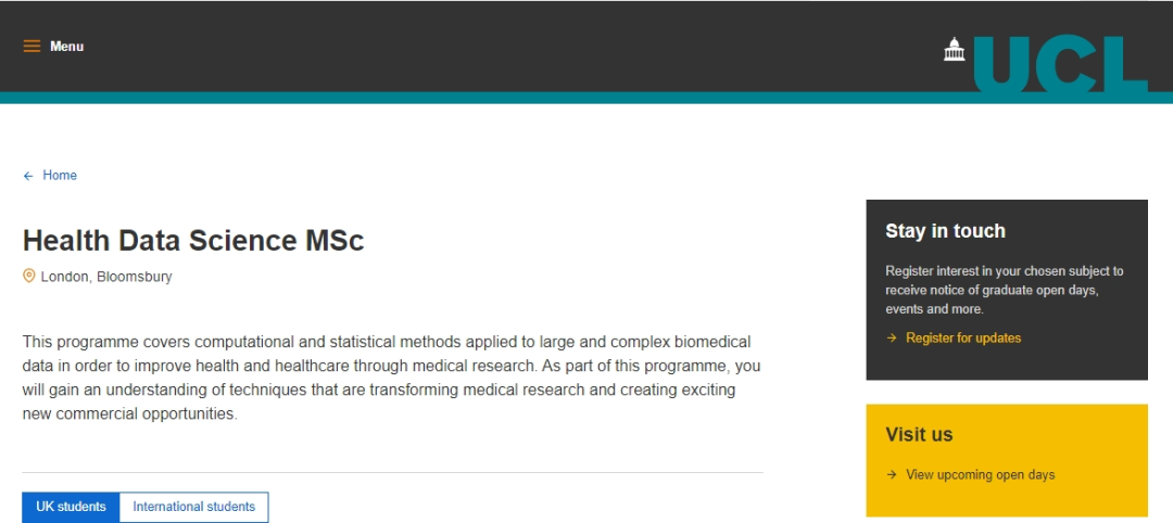 2024offer來襲!恭喜S同學在碩士留學申請中斬獲倫敦大學學院UCL「健康數據科學」碩士錄取!