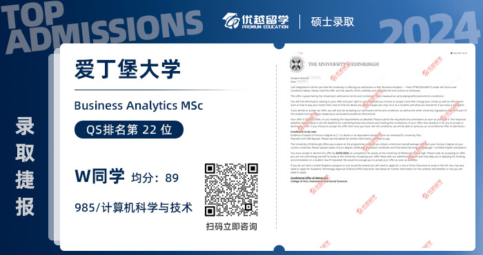 2024offer來襲!恭喜W同學在碩士留學申請中斬獲愛丁堡大學商業分析BA碩士通知書!