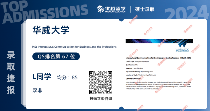 以上是【【華威大學(xué)】華威offer來啦!好的結(jié)果值得等待!】相關(guān)的全部內(nèi)容,查看更多【offer榜單】、【名校案例】相關(guān)資訊可前往【優(yōu)越留學(xué)】首頁!世界名校申請,找優(yōu)越留學(xué)!選校定校、申請規(guī)劃、文書寫作、背景提升、方案定制一套搞定!點擊【在線咨詢】,優(yōu)越留學(xué)顧問24h在線為您一對一解答!