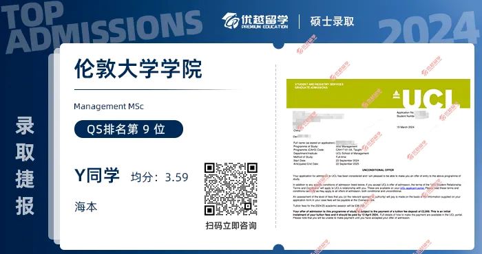 以上是【【倫敦大學(xué)學(xué)院】offer來襲,UCL終于想起來營業(yè)了!】相關(guān)的全部內(nèi)容,查看更多【offer榜單】、【名校案例】相關(guān)資訊可前往【優(yōu)越留學(xué)】首頁!世界名校申請,找優(yōu)越留學(xué)!選校定校、申請規(guī)劃、文書寫作、背景提升、方案定制一套搞定!點擊【在線咨詢】,優(yōu)越留學(xué)顧問24h在線為您一對一解答!