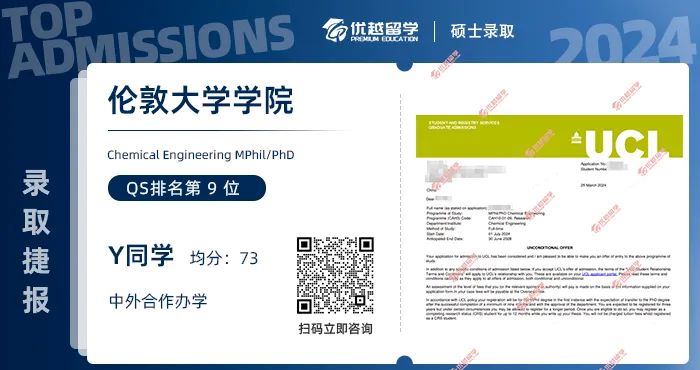 以上是【【倫敦大學學院】offer雨又來啦!這批錄取人是什么背景?】相關的全部內容,查看更多【offer榜單】、【名校案例】相關資訊可前往【優越留學】首頁!世界名校申請,找優越留學!選校定校、申請規劃、文書寫作、背景提升、方案定制一套搞定!點擊【在線咨詢】,優越留學顧問24h在線為您一對一解答!