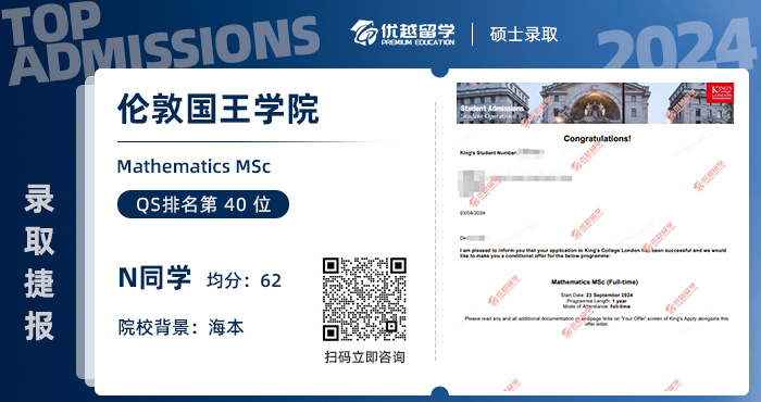 N學姐是去年7月來到優越的,用時4個月的時間,最終上岸KCL數學碩士項目。接下來,就跟優越君一起看看,N學姐的英國留學申請史吧~