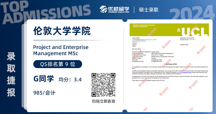 G學長是去年10月來到優越的,用時3個月的時間,最終上岸UCL的“網紅”專業——項目與企業管理。接下來,就跟優越君一起看看,G學長的英國留學讀研上岸秘訣吧~