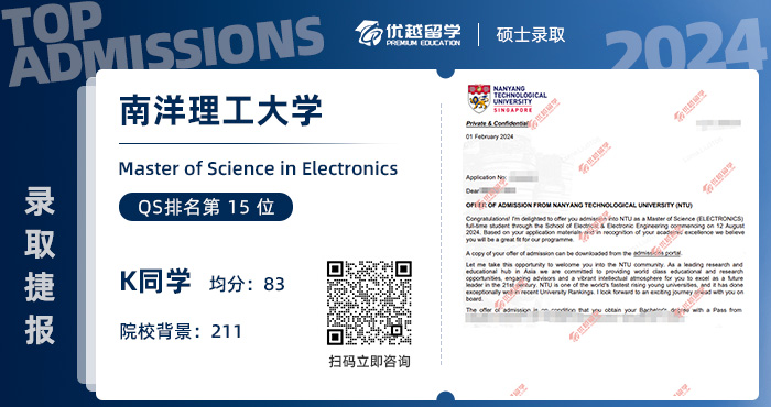 錄取院校:南洋理工大學(xué)——電子科學(xué)碩士