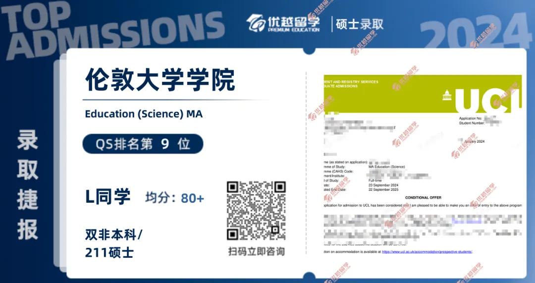 以上是【【倫敦大學學院】雙非逆襲!均分80斬獲UCL教育學碩士offer! 】相關的全部內容,查看更多【offer榜單】、【名校案例】相關資訊可前往【優越留學】首頁!世界名校申請,找優越留學!選校定校、申請規劃、文書寫作、背景提升、方案定制一套搞定!點擊【在線咨詢】,優越留學顧問24h在線為您一對一解答!