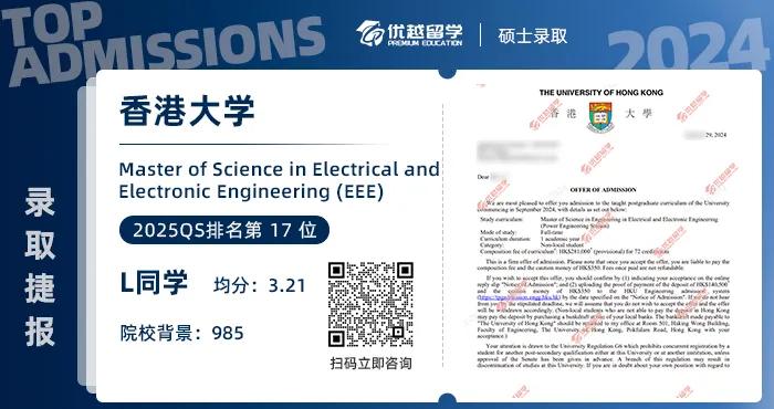 錄取院校:香港大學(xué)-電子電氣工程(EEE)碩士