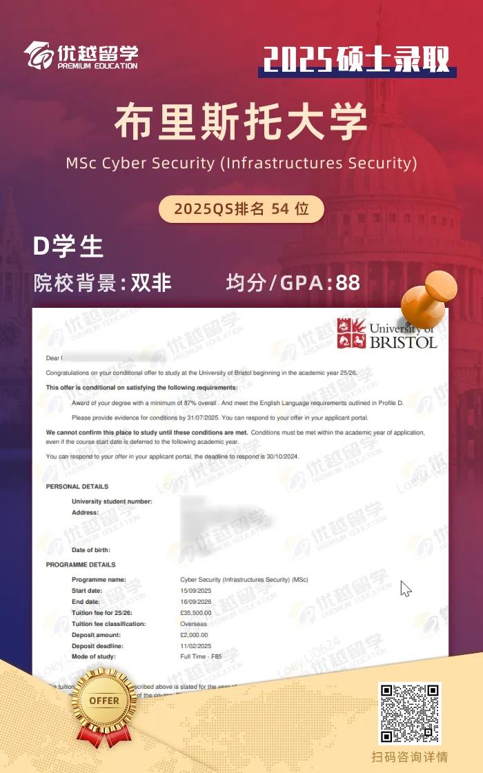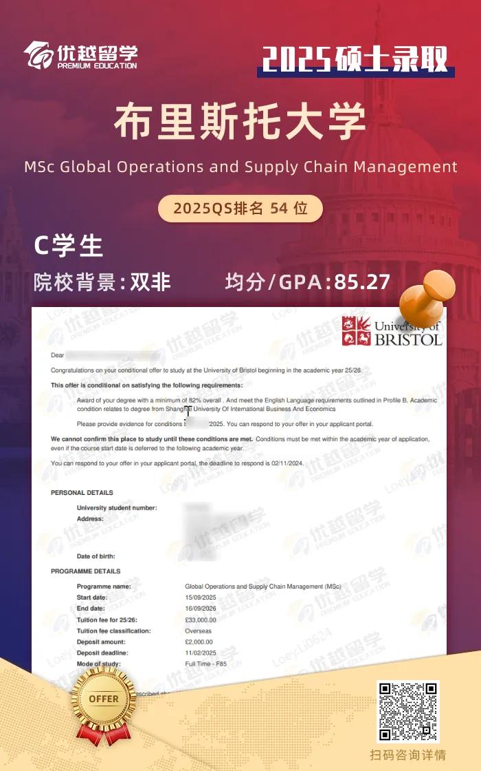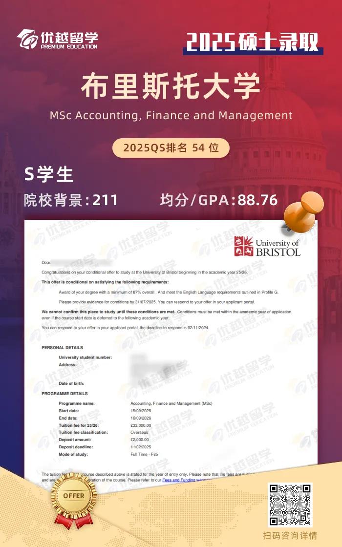 25fall offer雨來襲:布里斯托大學連下4封碩士offer !