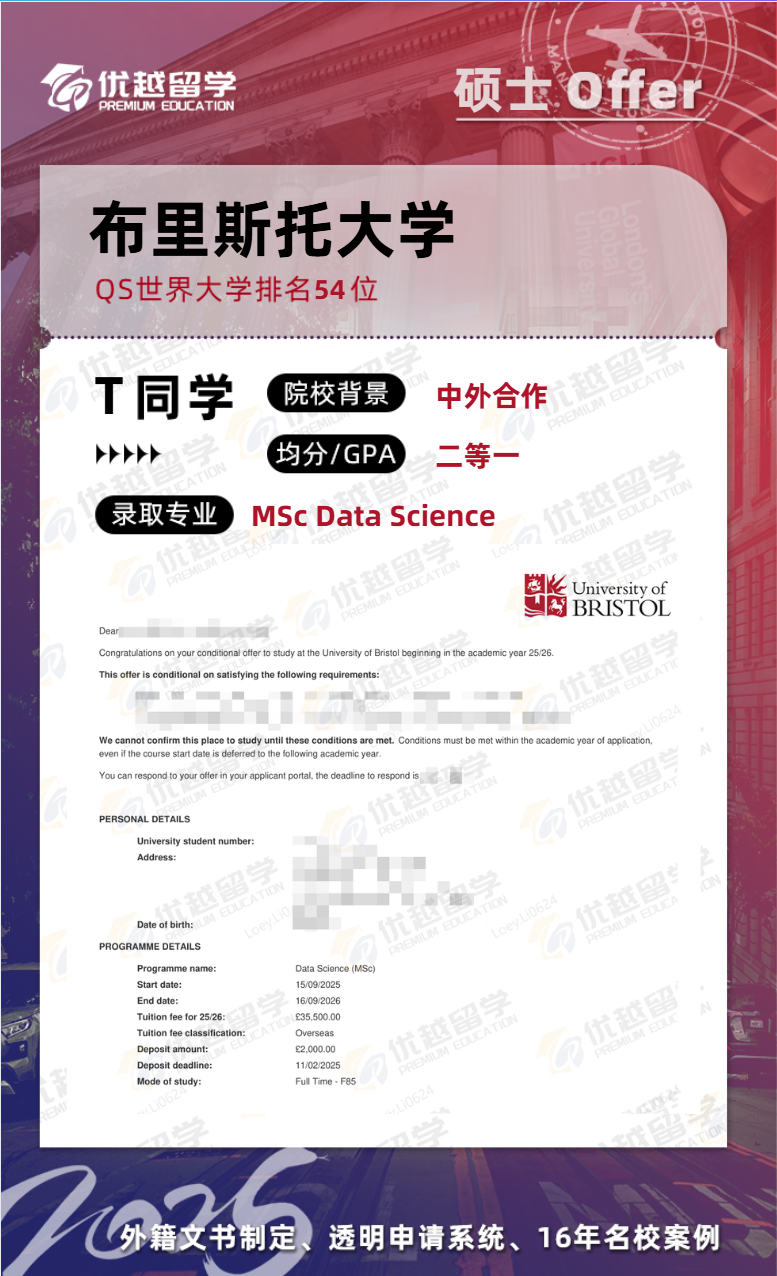 恭喜優(yōu)越學(xué)員碩士研究生申請首戰(zhàn)告捷,拿下布里斯托大學(xué)數(shù)據(jù)科學(xué)碩士offer。接下來,就跟優(yōu)越君一起看看這位同學(xué)的上岸歷程~