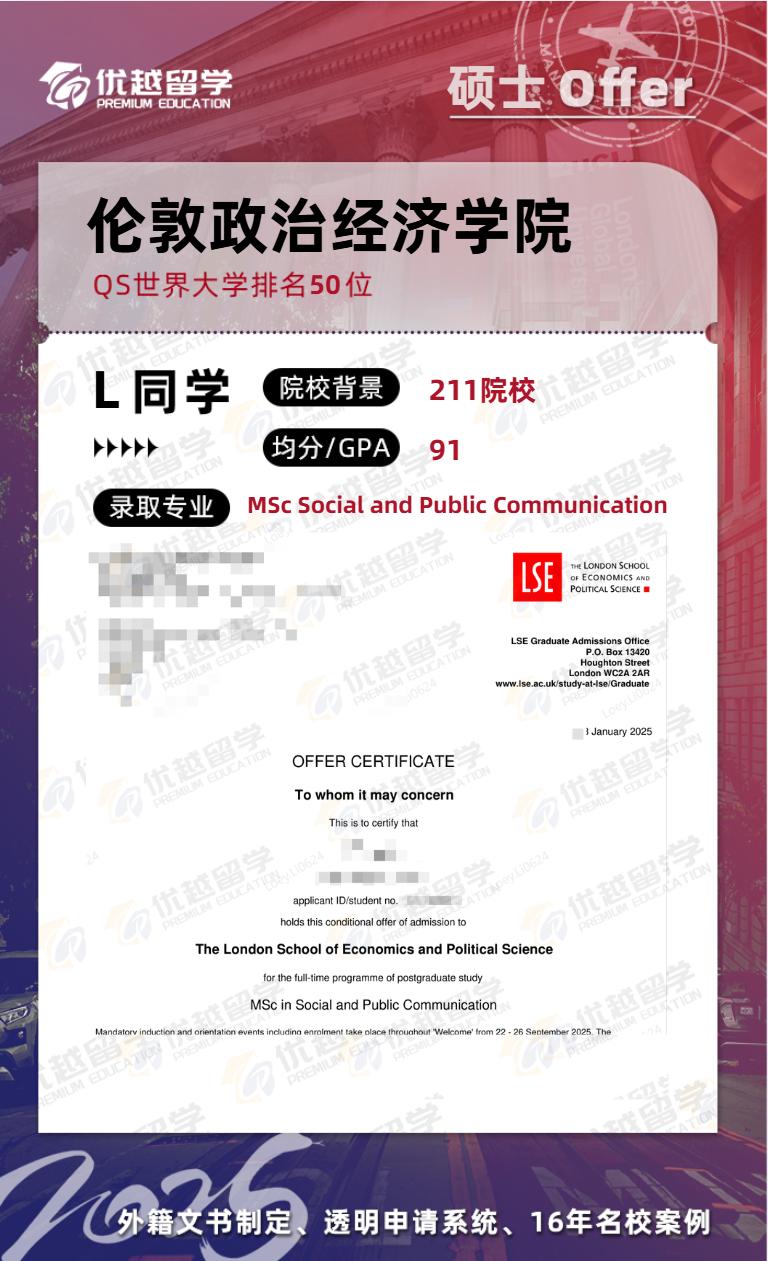 當前位置: 首頁 > 關于優越 > 錄取榜單 > 【倫敦政治經濟學院】offer+1!211錄取LSE社會與公共傳播碩士