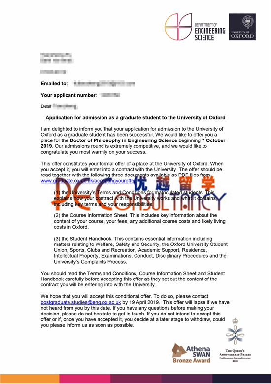 當(dāng)前位置 :關(guān)于優(yōu)越->成功案例->2019offer:恭喜王同學(xué)獲得牛津大學(xué)(世界排名:4)土木工程方向博士通知書
