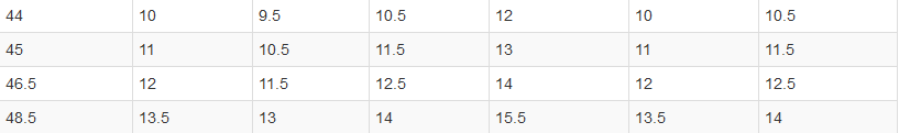 來,咱們給咱們上表格比照:咱們在國內(nèi)常用的尺度是歐洲碼,表格平分別對應(yīng)的鞋碼是英碼、美碼和澳碼。經(jīng)常海淘的也請收下這個表,不用謝!