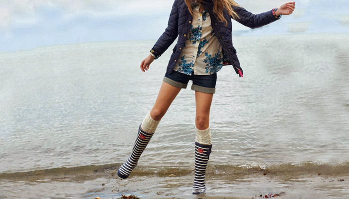 很多人概念中雨靴只是孩子專用,而且穿起來(lái)很容易顯得腿短。但是如果是精心按腿部線條設(shè)計(jì)的Joules,情況則大不一樣了。這個(gè)從雨靴起家的品牌,已經(jīng)深得許許多多英國(guó)年輕家庭和時(shí)尚男女的歡心。