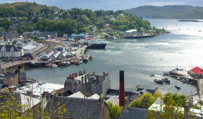 坐落蘇格蘭西北方的奧本(Oban)小城本來僅僅一個小漁村,可是因為其優勝的地理位置,使它從19世紀開端人物完成華麗改變,現在的奧本不再僅僅一個小漁村,而是蘇格蘭高地通往各個島嶼的主要港口。